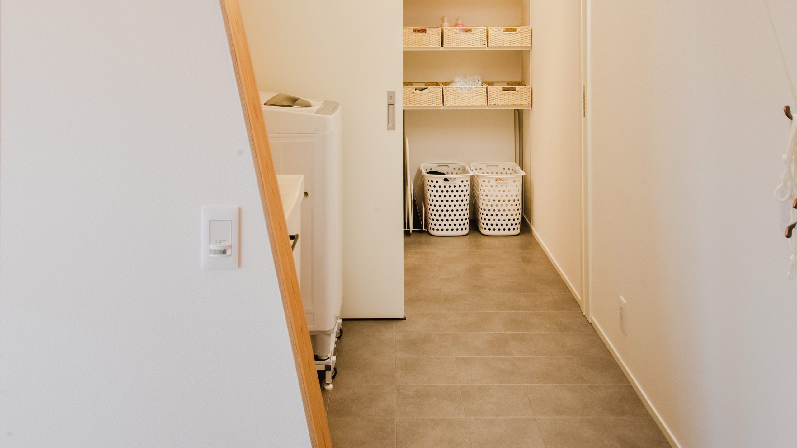 床の色と棚の色を合わせることで、統一感や落ち着きをお家全体で演出することができます。