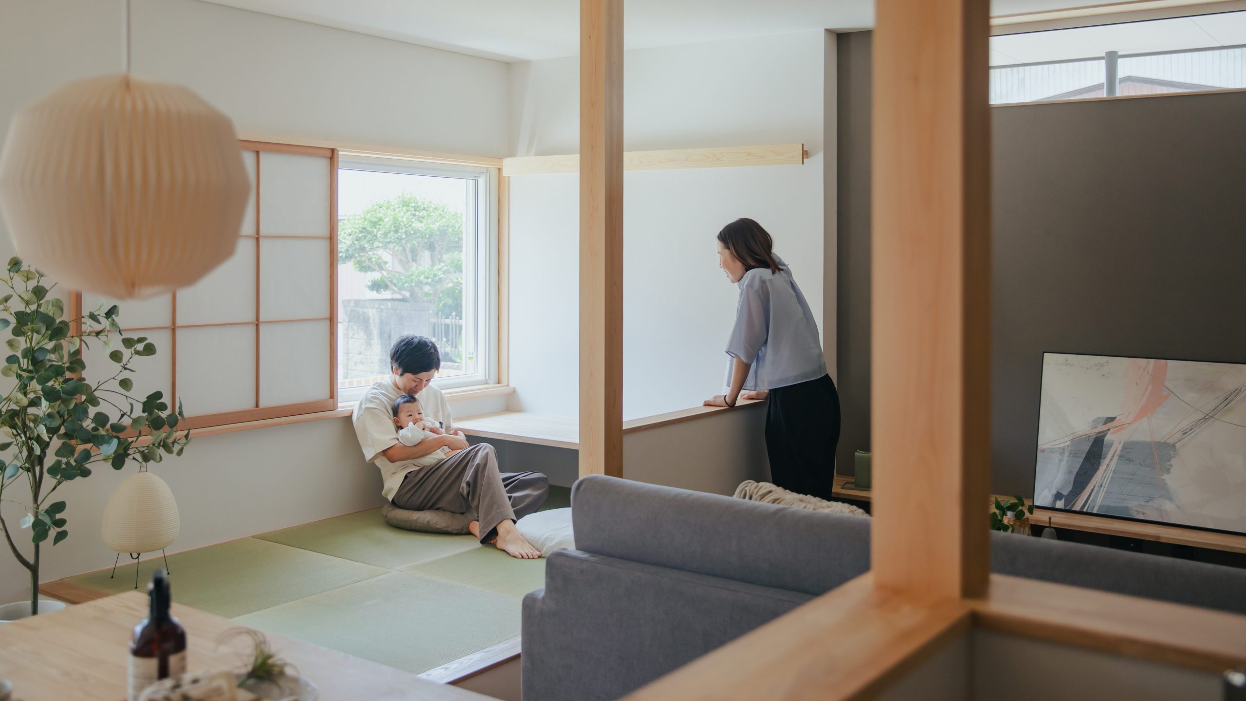 一部分のみ畳ゾーンにすることで、気持ちの切り替えができ、ドアなどがなくても雰囲気が切り替わりますね。